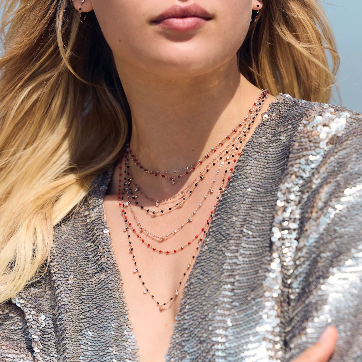 Gigi-Halsketten fangen das Licht ein und liegen sanft auf der Haut. Sie zeigen die Magie der Festtage und laden dazu ein, leicht und strahlend zu glänzen.