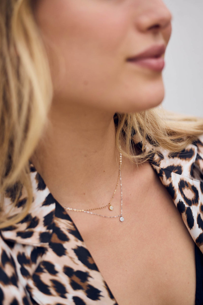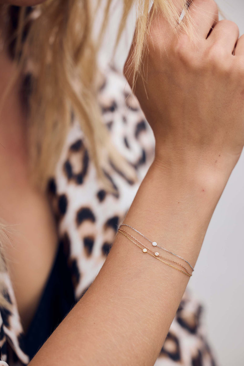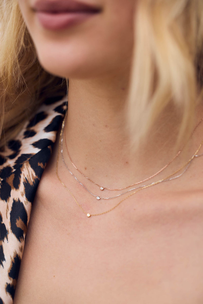 Die Kollektion Pure Dot offenbart die Eleganz des Minimalismus. Eine feine Goldkette, erleuchtet von einem eingefassten Diamanten, erhältlich in drei Goldtönen, um mit den Nuancen zu spielen. Solo getragen, um jede Bewegung zu betonen, oder in Kombination für einen natürlich strahlenden Look.