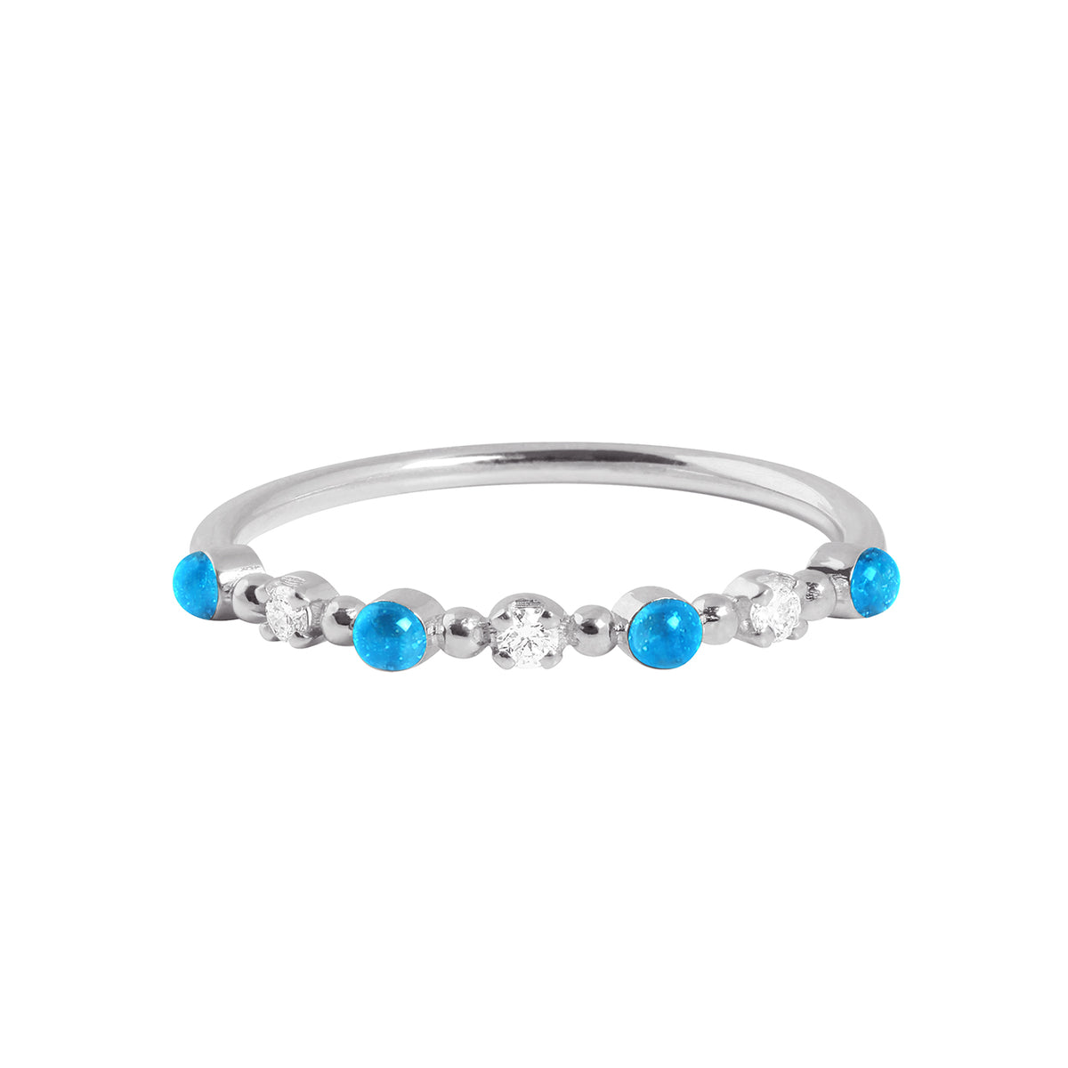 Ring gigi CLOZEAU in Azurblau aus 18-karätigem Weißgold mit drei Diamanten und eleganten Perlen aus Kunstharz.