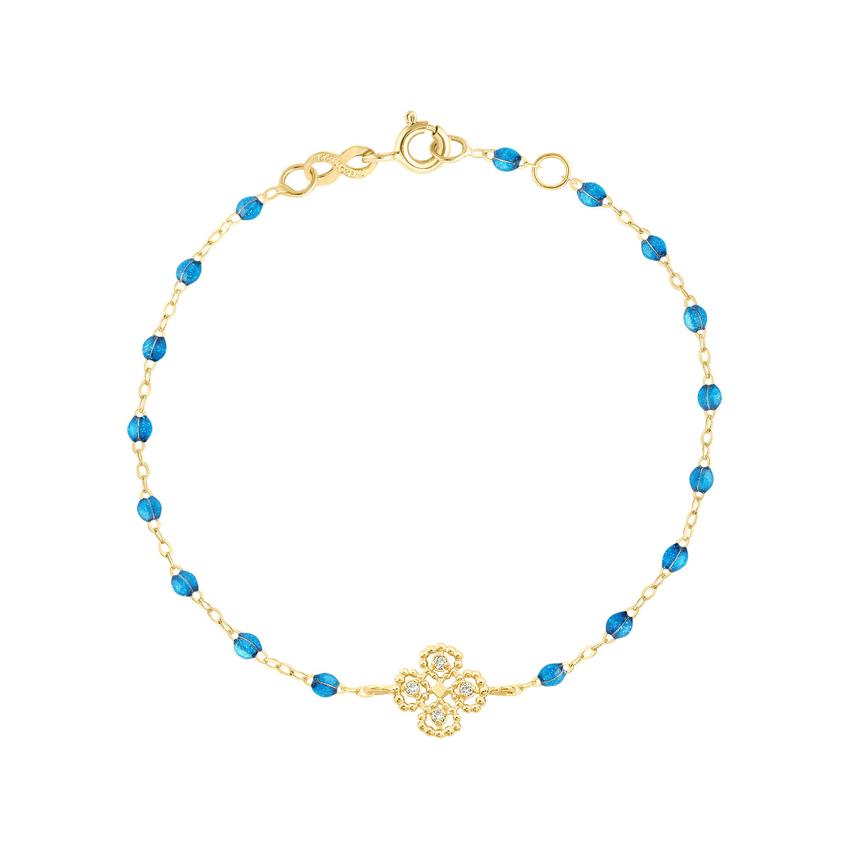 Armband Azurblau Lucky Trèfle, Diamanten, Gelbgold, 17 cm