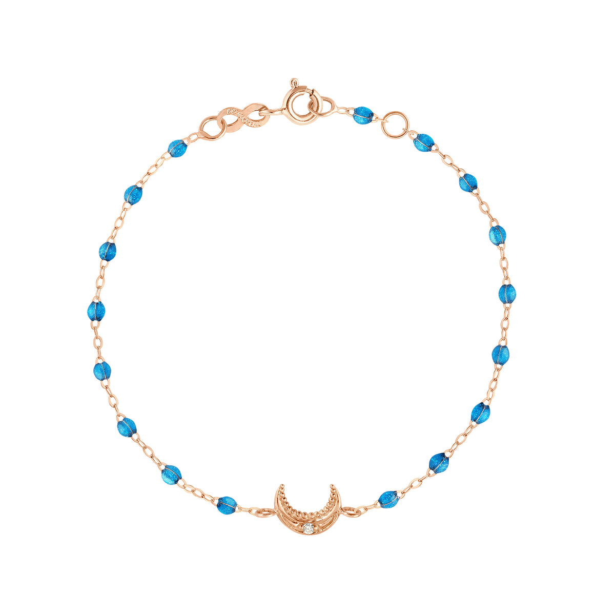 Nach Einbruch der Dunkelheit leuchtet der Mond von Gigi dezent am Sternenhimmel. Der Stern, der Mond, der Schlüssel und der Davidstern von Gigi: Dies sind die Schätze aus der „Piraten“-Kollektion. Schmuck, der aus dem Tresor eines Schiffes zu stammen scheint. Armband Lune, 1 Diamant, 18 Karat Roségold und elegante Perlen aus Kunstharz.