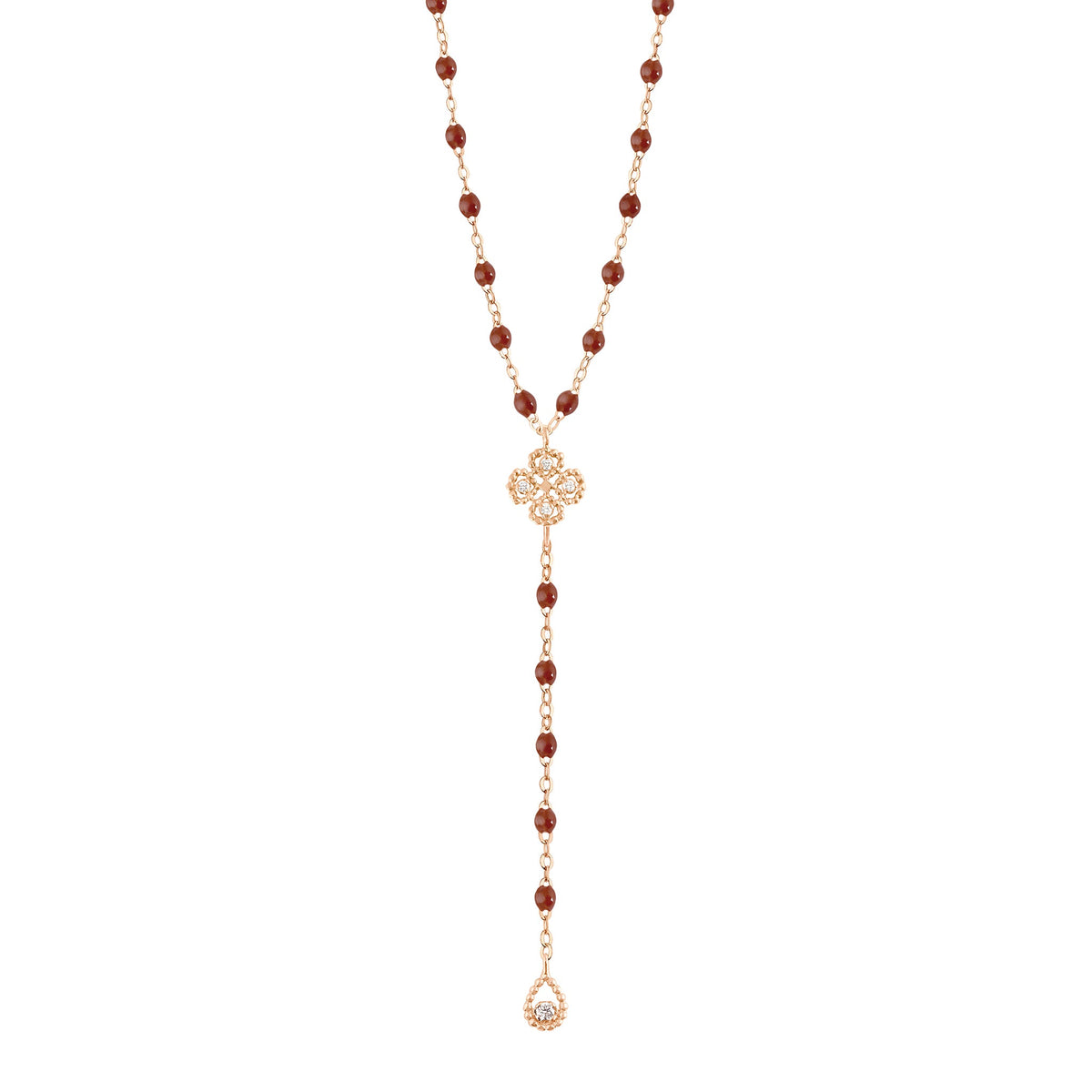 Gigi Clozeau - Chapelet moka Lucky Trèfle, diamants, or rose, 45 cm